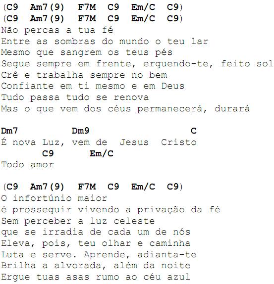 Nova Luz – Mocidade da Comunhão Espírita de Brasília Composição: Grupo Arte Nascente Compartilhe isso: Clique para compartilhar no Facebook(abre em nova janela) Facebook Clique para compartilhar no X(abre em nova janela) 18+ Curtir Carregando...
